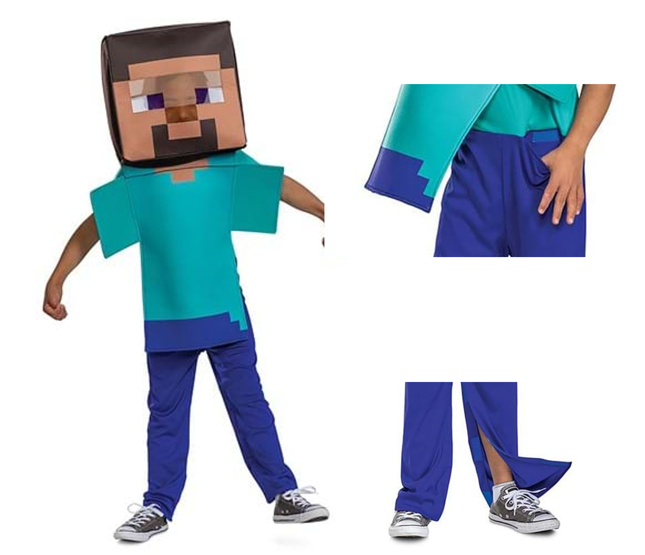 minecraft child adaptive steve costume - תחפושת שמתאימה לילדים שמשתמשים בפרוטזה או סדים ואביזר רפואי- halooweencostumes.com
